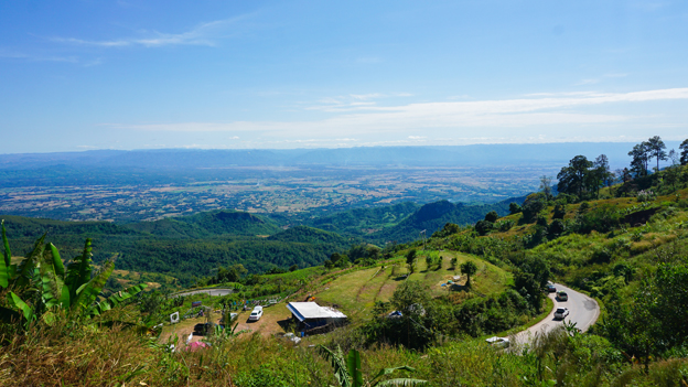 บรรยากศบนที่สูงดีงามมากเลย ลมเย็นๆ โชยเบาๆ มันยากจะอธิบาย..จะเห็นว่ารถราเริ่มแล่นผ่านไปมากันเป็นระยะ คนที่มาพักแล้วก็ไปเที่ยวต่อที่อื่น คนที่ยังไม่เคยขึ้นมาภูทับเบิก ก็ทะยอยมารับโอโซนกัน