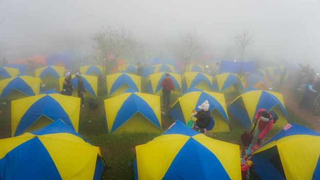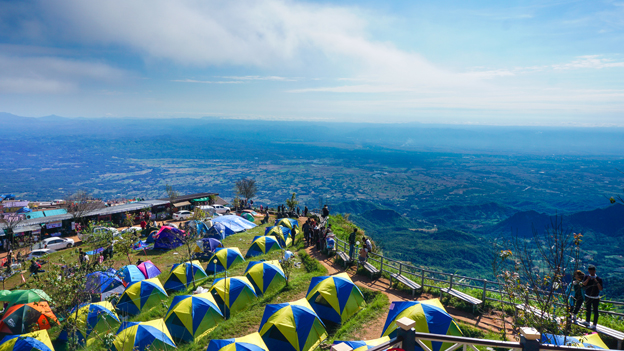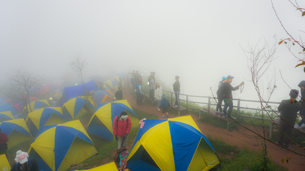 พอมาถึงเดินชมบรรยการศรอบ ๆ จะเห็นว่ามีเต็นท์ที่พักมากมายไว้รองรับนักท่องเที่ยว อุณหภูมิเฉลี่ยประมาณ 16-21 องศา เย็นสบายดี อากาศบริสุทธิ์มาก ของจริงฟินกว่านี้เยอะครับ