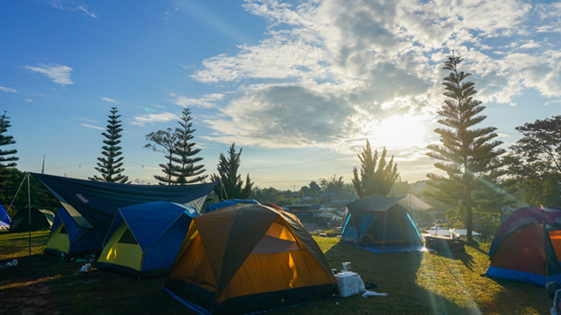 บรรยากาศยามเช้า แสงอาทิตย์ส่องลอดเต๊นท์เข้ามา รู้สึกสดชื่น ได้รับไออุ่น ฟินมากกก!