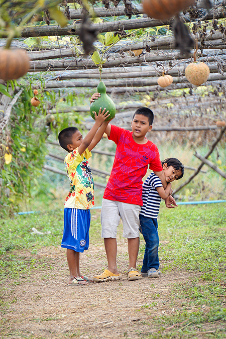เฮ้ย!! ฟักเต้าก็มี มันจะห้อยโตงเตงไปมาหน่อยนะ เด็กๆไม่เคยเห็น สงสัยกันใหญ่