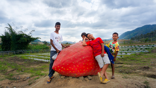 ไม่ได้มาช่วงหนาวสิ้นปี สตรอว์เบอร์รีไม่ออก เด็กๆแอบเซ็ง อ่ะ..งั้นถ่ายกับสตอ...ของปลอมไปก่อน