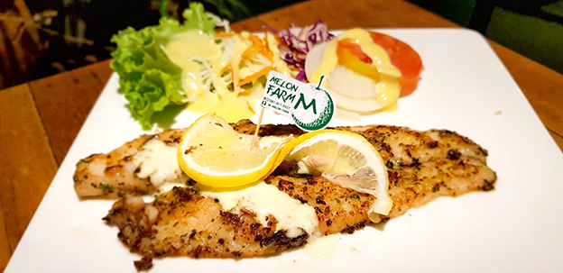 สเต็กปลา บีบมะนาวใส่หน่อย ให้ซึมลงในเนื้อปลา ตักเข้าปากพร้อมความหวานของเนื้อปลา สวรรค์จริง ๆ