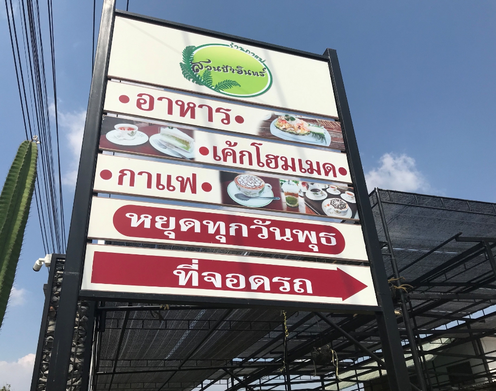 ขับมาสักระยะ 3 กม. จะเจอกับป้ายใหญ่ ๆ ร้านสวนป้าอินทร์อยู่ขวามือนั้นเอง