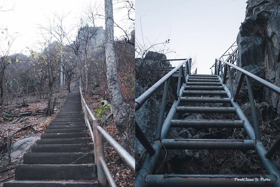 ผมลืมบอกไปครับว่า..อย่าลืมพกน้ำยาดมมาด้วยนะครับ เพราะมันเหนื่อยม้วกกก บันไดช่วงแรกจะเป็นบันไดปูน ส่วนท้าย ๆจะเป็นบันไดลิง เดินมาจนเหนื่อย แวะพักอีกหน่อย...มองไปด้านบนโน่น จะเห็นว่าเราใกล้ถึงแล้ว เอ้า..ไปต่อ