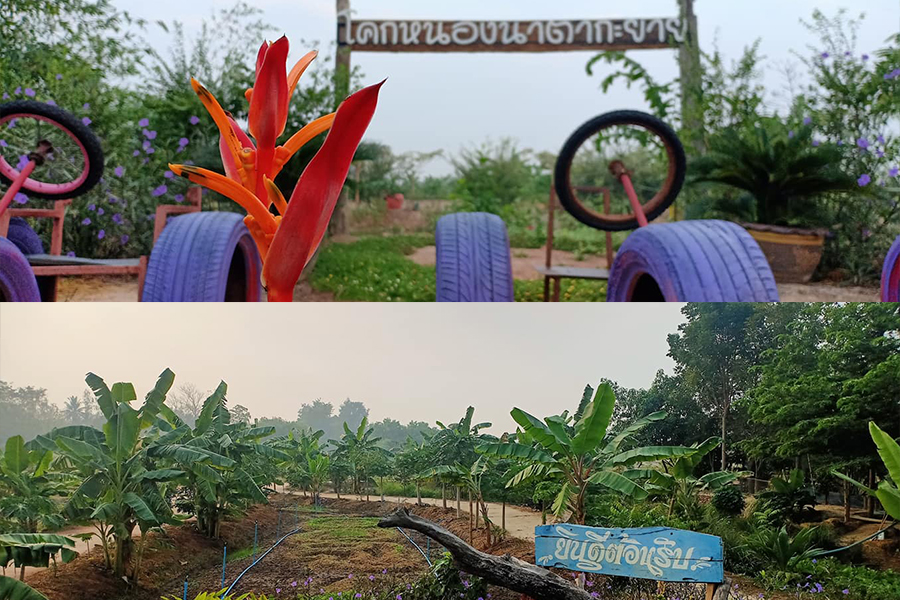 ส่วนพืชผักโคกหนอกตากะยายที่ปลูก จะมีพวกมะเขือ พริก ฝักทอง กะเพรา ผักต่าง ๆ ที่เรากิน ในสระก็จะมีปลา เราเลี้ยงเป็ดไว้กินไข่ เลี้ยงปลาไว้กินเนื้อ เลี้ยงสัตว์ไว้นำมูลสัตว์มาทำปุ๋ย ถ้าถามว่า คุ้มไหมกับสิ่งที่ทำมาในวันนี้ ต้องบอกเลยค่ะว่า คุ้มมากกกกกกก เพราะเหนือกว่ารายได้ที่ได้รับตลอดทั้งปี ได้กินอาหารปลอดสารพิษ นั้นคือรอยยิ้มของครอบครัว ตากับยาย และคนอื่น ๆ มีความสุขมาก ได้ออกไปเก็บไข่ ปลูกผัก รดน้ำทุกวัน เหมือนได้ออกกำลังกายไปด้วย นี่ละโครตจะคุ้มแล้วค่ะ