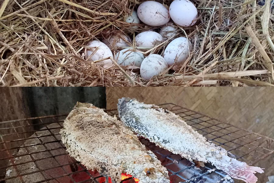 มีการทำซุ้มเป็ดแซนวิชปลา โดยใช้แฝกหุ้มและใส่มูลสัตว์และใช้ฝางห่มใส่มูลสัตว์อีกที สลับเป็นชั้น ๆ กันไป