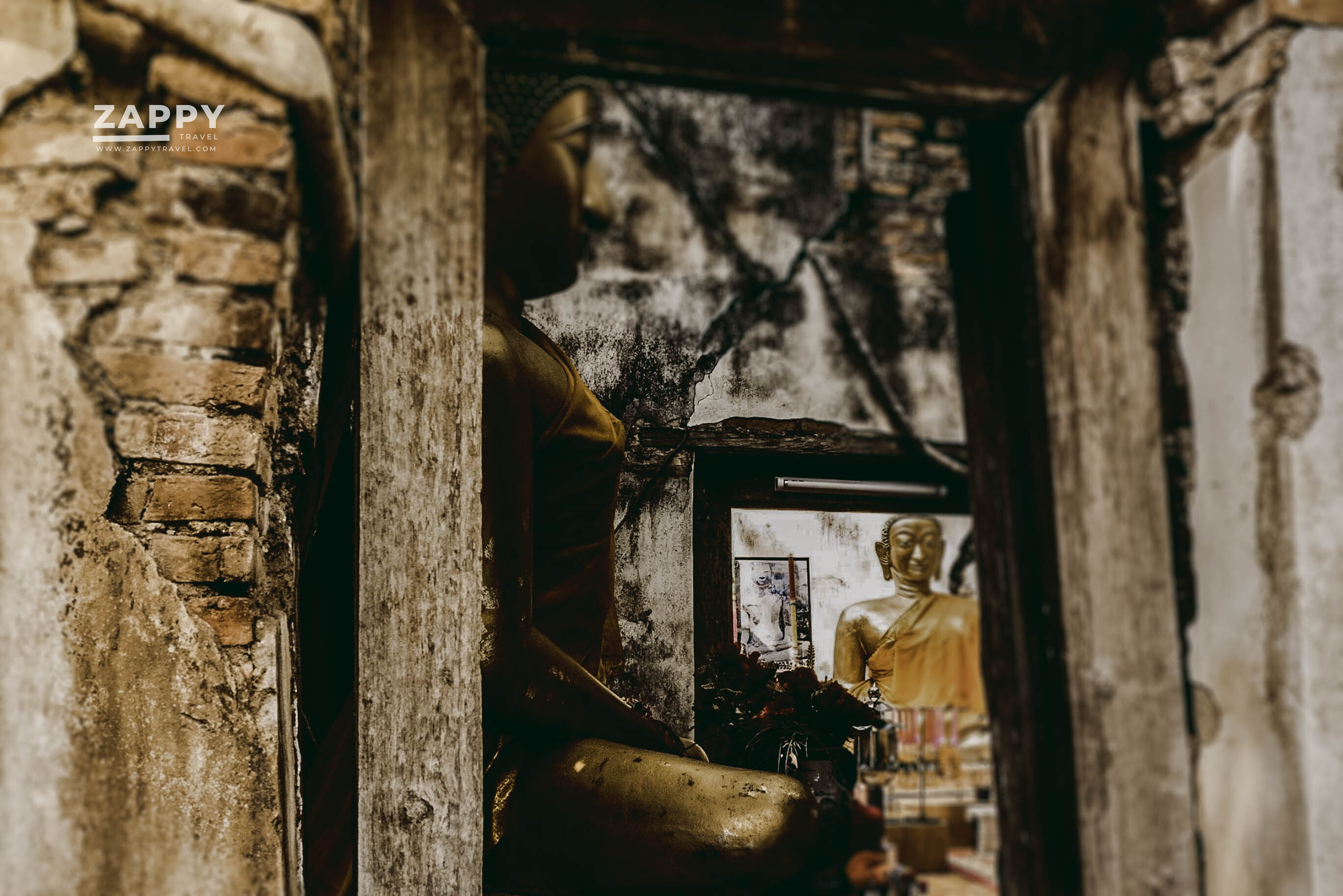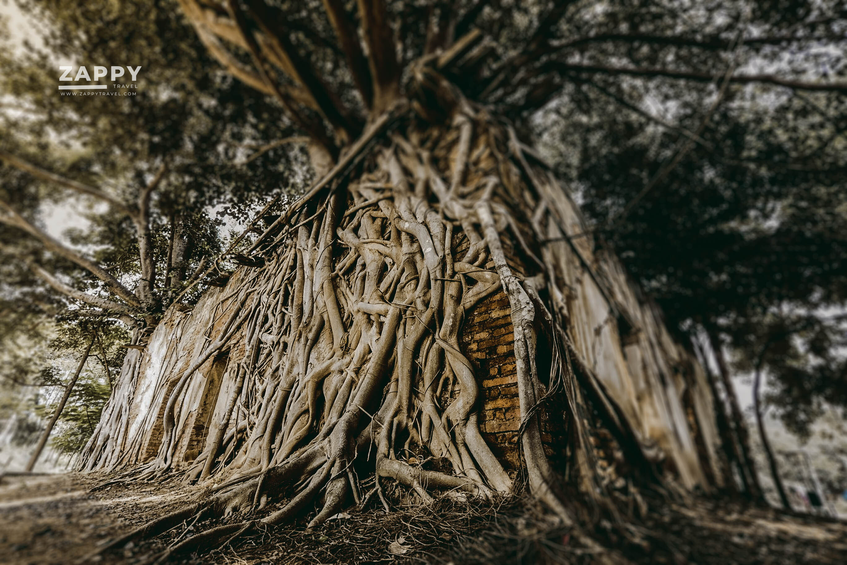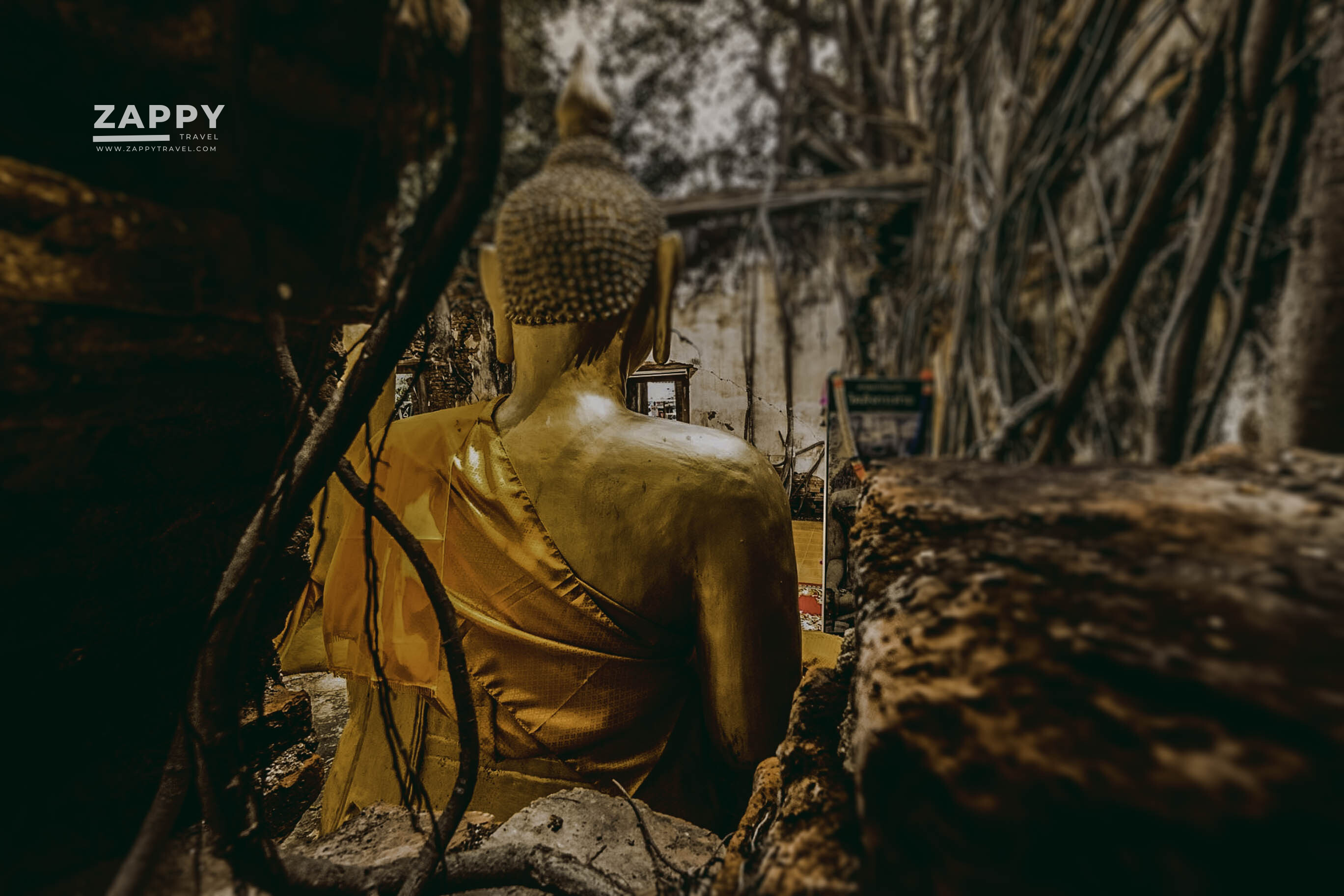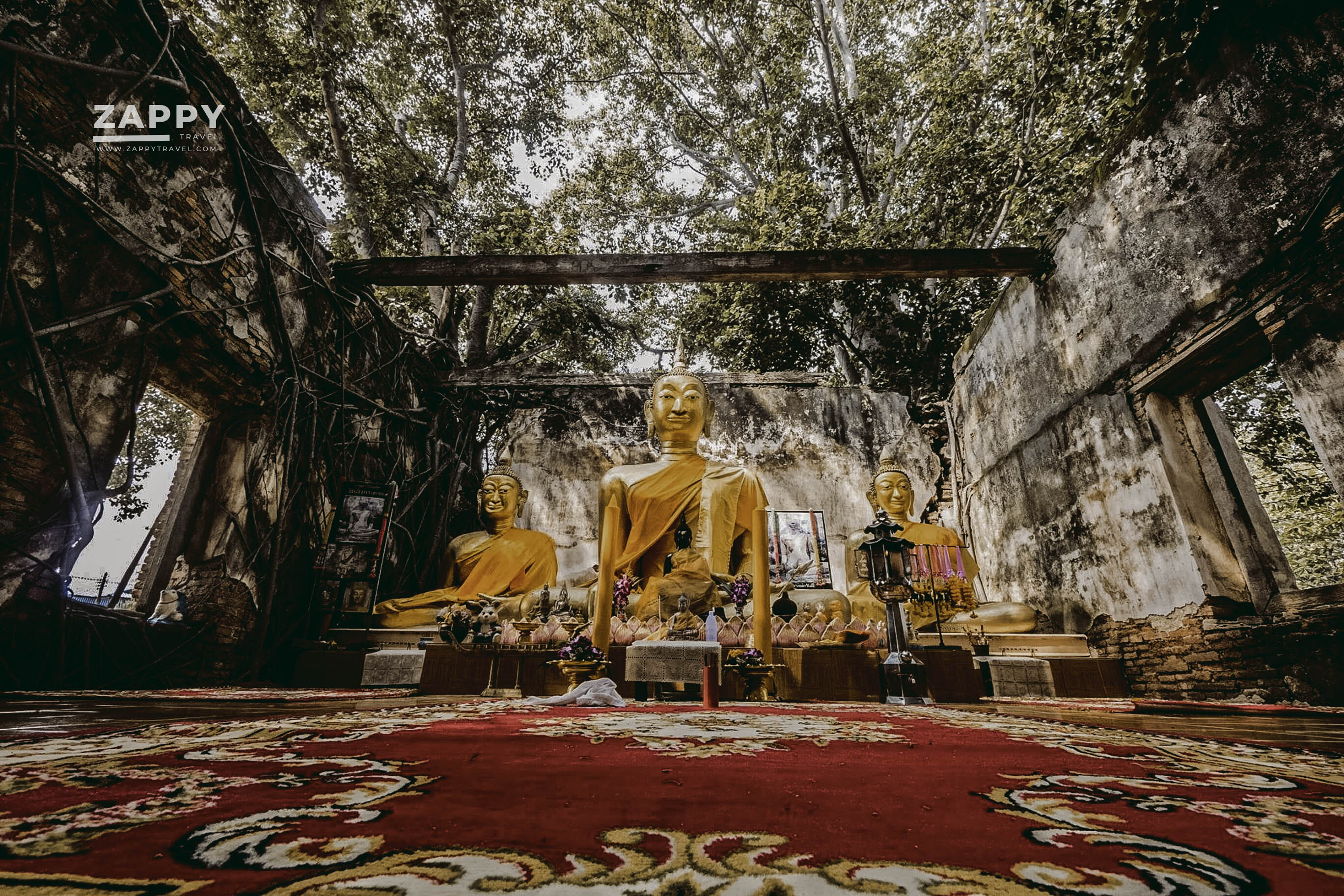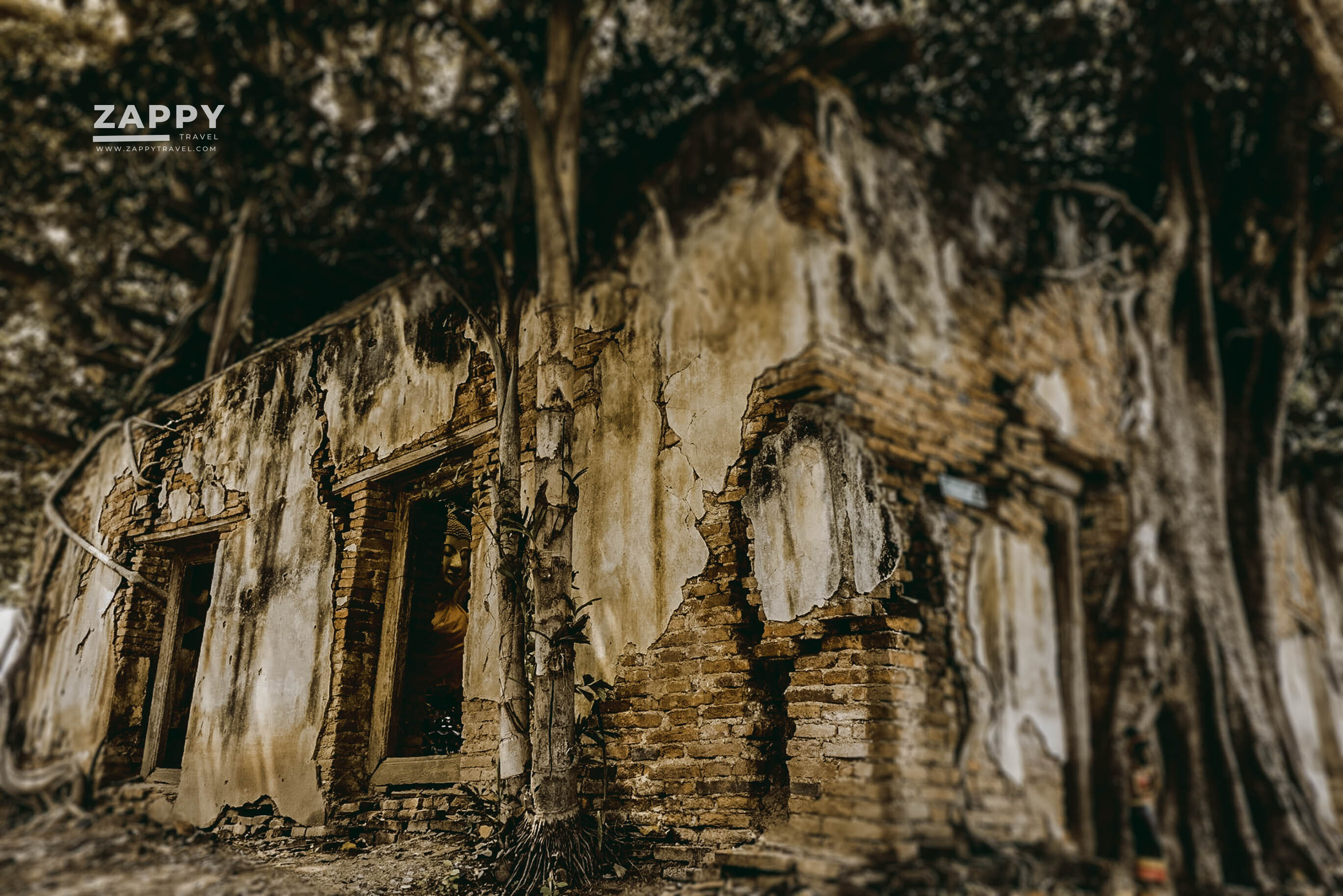แม้ผนังโบสถ์จะดูเก่าแก่และทรุดโทรมแต่ยังคงสภาพอยู่ได้เพราะมีรากต้นโพธิ์ 4 ต้น ขึ้นปกคลุมแล้วยึดผนังโบสถ์เอาไว้เป็นที่น่าแปลกมาก ๆ เนื่องจากรากต้นโพธิ์ได้แตกรากปกคลุมโอบผนังโบสถ์ไว้ในลักษณะ 4 มุมพอดี Unseen ของวัดนี้ คือ ช่องหน้าต่างที่มองเข้าไปตรงกับองค์พระพอดี กับผนังที่ถูกอุ้มไว้ด้วยรากของต้นโพธิ์