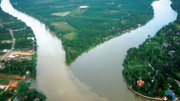 เป็นการบรรจบของคลองพุมดวงกับแม่น้ำตาปีที่ไหลมาจากเทือกเขาหลวง จังหวัดนครศรีธรรมราช ตรงบริเวณตำบลท่าข้าม อำเภอพุนพิน โดยที่น้ำจากคลองพุมดวงนั้นมีระยะทางสั้นกว่าจึงมีน้ำใสกว่า ก่อนจะรวมบรรจบกลายเป็นสายน้ำสองสีแห่ง "แม่น้ำตาปี" แล้วไหลออกสู่อ่าวไทยบริเวณปากน้ำบ้านดอน รวมระยะทางทั้งสิ้น 232 กม. ซึ่งชื่อเดิมคือ "แม่น้ำหลวง" ก่อนที่จะได้รับพระราชทานนามใหม่พร้อมกับการเปลี่ยนชื่อเรียกจังหวัดจาก "เมืองไชยา" เป็น "สุราษฎร์ธานี" จากพระบาทสมเด็จพระมงกุฎเกล้าเจ้าอยู่หัวรัชกาลที่ 6 เมื่อครั้นเสด็จประพาสมณฑลปักษ์ใต้ในวันที่ 29 กรกฎาคม 2458)