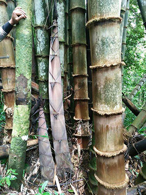 เป็นไม้ไผ่ที่มีลำต้นตรง ขนาดใหญ่ที่สุดเท่าที่สำรวจพบมาในประเทศไทย และพบได้แห่งเดียวในเขตอุทยานแห่งชาติคลองพนม อำเภอพนมเท่านั้น ขึ้นเจริญเติบโตในป่ารกและพื้นที่ลาดชันเป็นกอๆ ไม่ปะปนกับไผ่ชนิดอื่น มีขนาดลำต้นยาวประมาณ 30-40 เมตร เส้นรอบวงประมาณ 60-80 ซม. ความหนาของเนื้อไม้ประมาณ 1 นิ้ว หากชาวบ้านต้องการใช้ประโยชน์จากหน่อหรือลำต้น ต้องโค่น(เฉียง)ลงมาแบ่งตัดเป็นท่อนๆ แล้วค่อยออกแรงผลักดัน(รุน)ไปข้างหน้า เพราะขนาดใหญ่ยักษ์มว๊ากกก จึงได้ชื่อ "ไผ่เฉียงรุน" ตามภาษาท้องถิ่นปักษ์ใต้ใช้เรียกกริยาแบบนี้