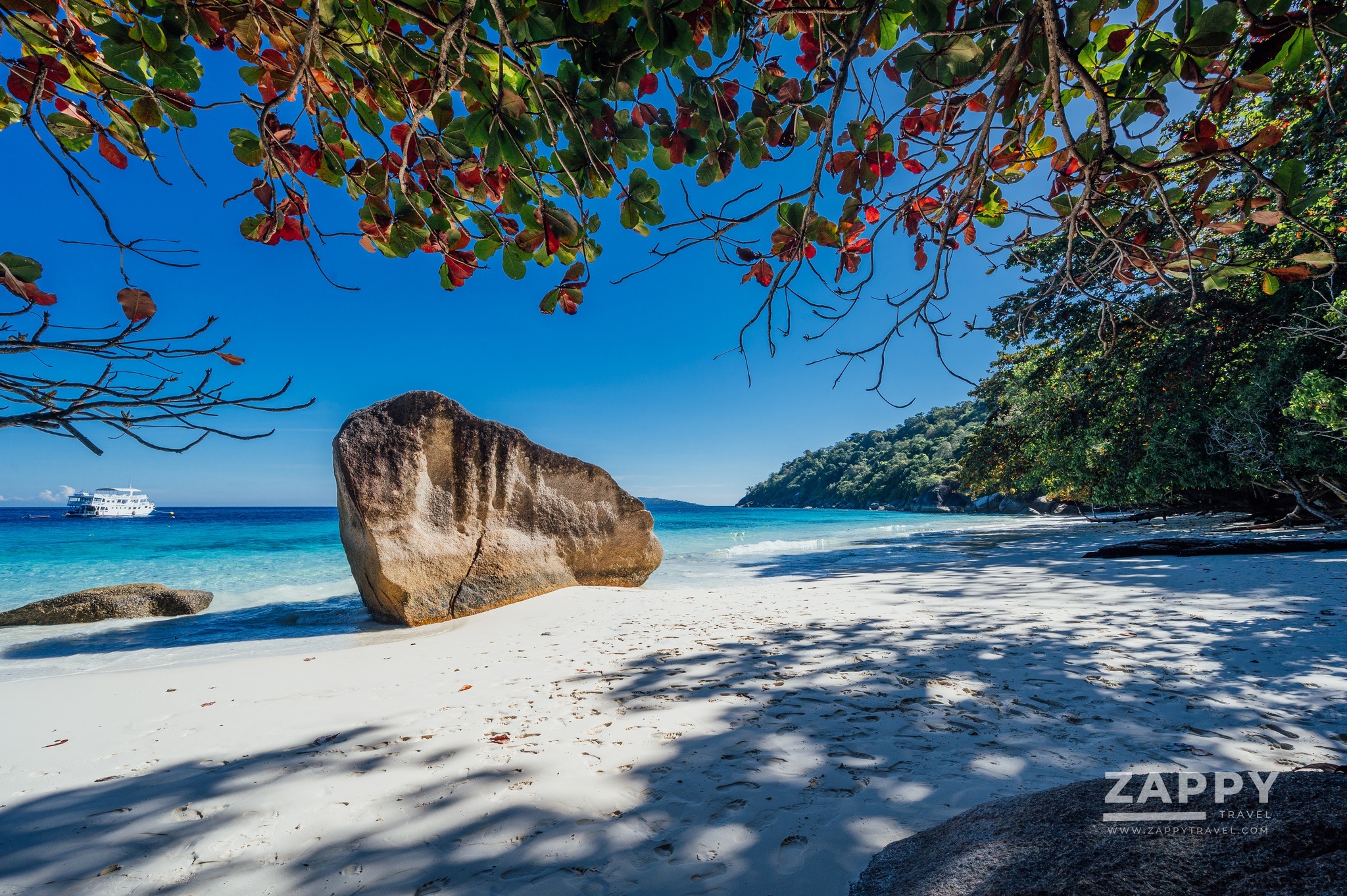 การเดินทางหลังจากมาถึงท่าเรือละมุจำเป็นต้องนั่งเรือสปีดโบ๊ท นั่งเรือออกมาจากฝั่งได้ชั่วโมงกว่าๆ ถึงจุดหมายแรก ที่ เกาะแปด หรือ เกาะสิมิลัน พอมาถึงเกาะ ไม่รีรอที่จะถ่ายรูปเลยค่ะ หาดทรายสีขาว กับน้ำทะเลสีฟ้าครามไล่เฉด ทะเลสวยเหมือนโปสการ์ดจริงๆ
