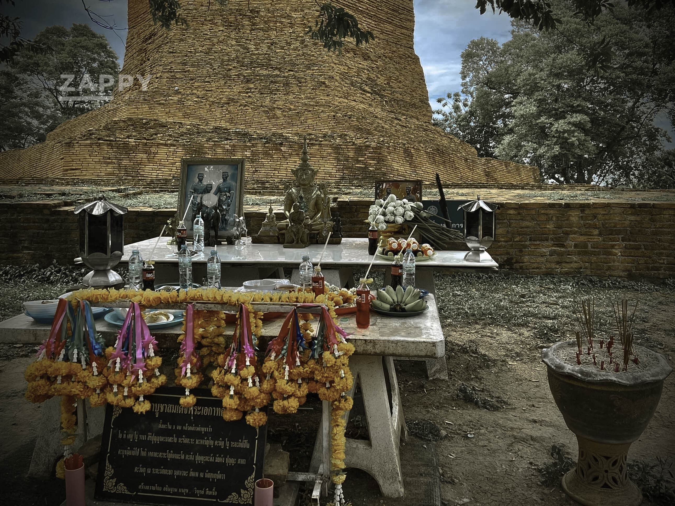 - สภาพเจดีย์มีความเอียง สันนิษฐานว่า เกิดจากการขุดเจาะหาสมบัติ