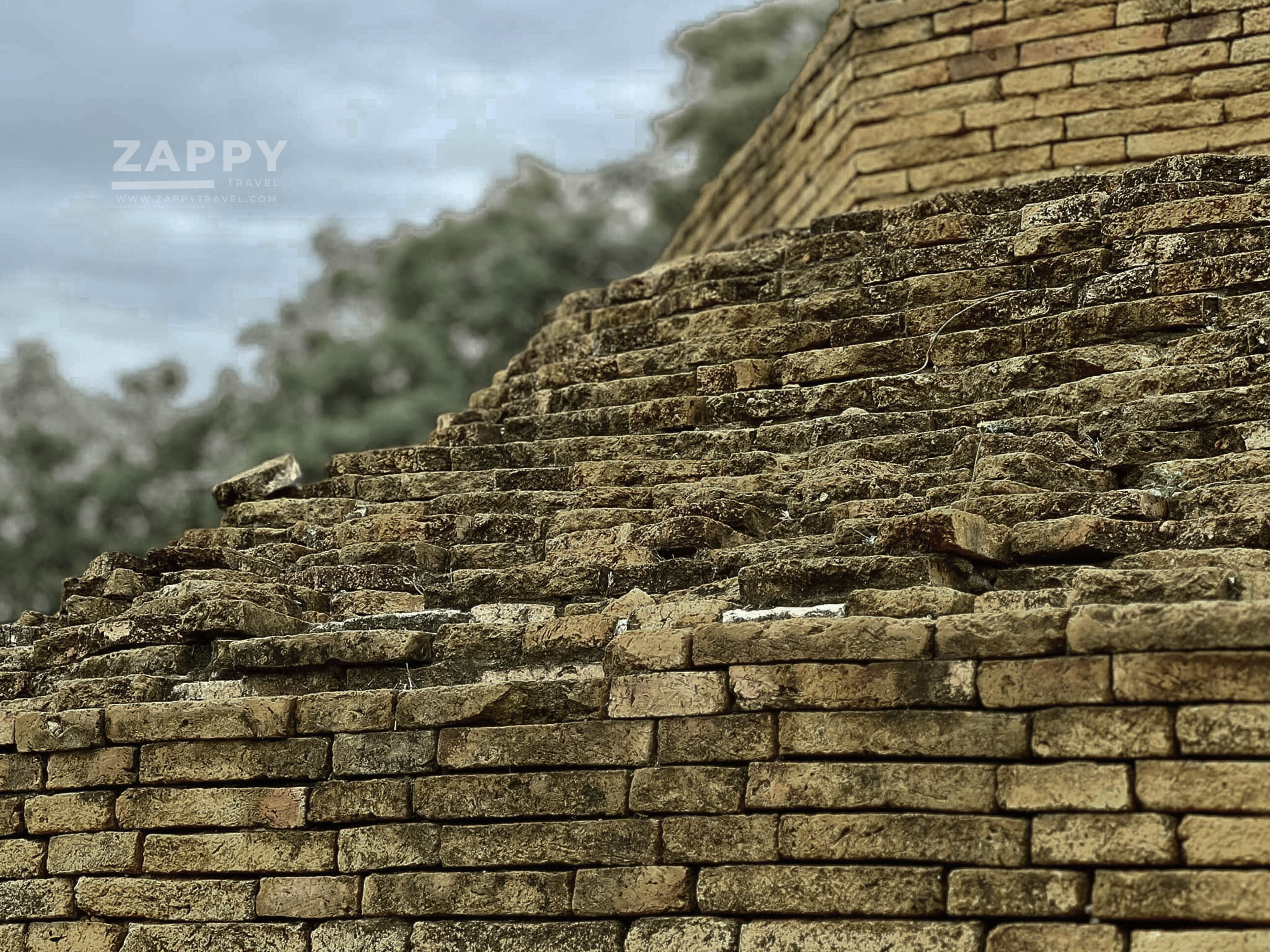 - สังเกตุเห็นรอบฐานพระเจดีย์ เป็นอิฐก่อขึ้นใหม่