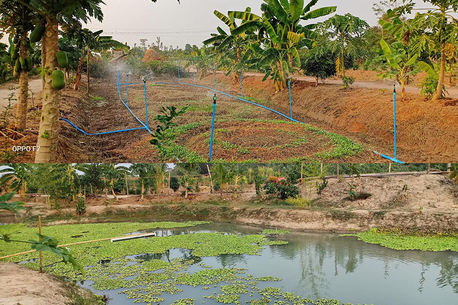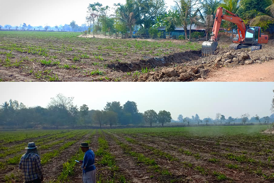 ส่วนดินจากการขุดหนองนี้ ก็จะนำมาถมเป็นโคก เพื่อเป็นทางเดิน ที่อยู่อาศัย ปลูกผัก เลี้ยงสัตว์รวมทั้งปลูกต้นไม้ เดินตามแนวศาสตร์พระราชาคือ“ป่า 3 อย่าง ประโยชน์ 4 อย่าง” เพื่อให้อยู่พอกิน