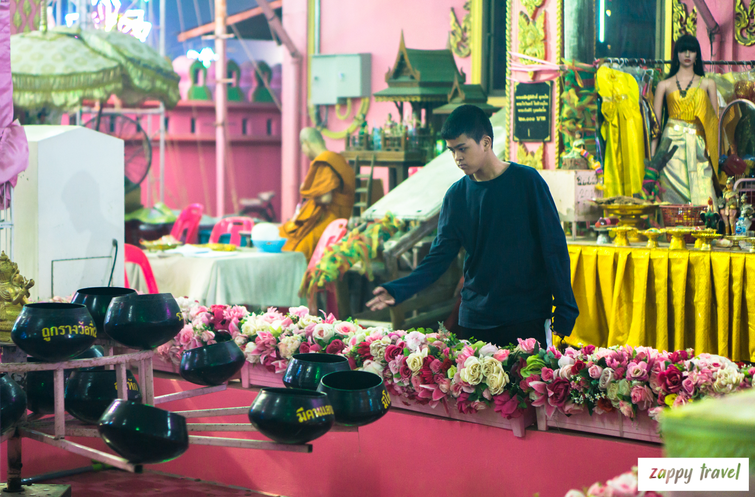 จุดนี้เป็นจุดให้โยนเหรียญเข้าบาตร แล้วแต่พร แต่ละอันที่เราโยนได้ เข้าอันไหนก็ขอพรให้สมหวังเรื่องนั้นค่ะ