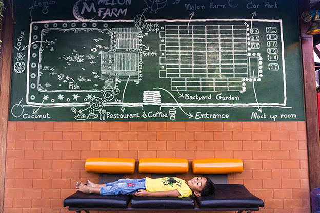 เดินชมสวนเมล่อนเหนื่อย ๆ แวะเข้าร้านอาหารอยู่ใกล้แค่เอื้อม ผมสั่งน้ำเมล่อนปั่นมานั่งดูดฟิน ๆ อยู่ข้างสระบัว ดูดไปมองปลาในสระบัวไป ได้ความ Slow Life ชิวสุด ๆ!
