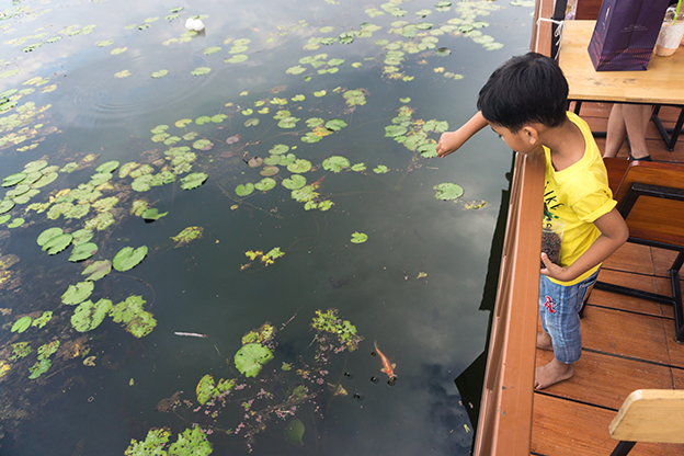 ให้อาหารปลาเพลินเลยครับ หนุ่มน้อย